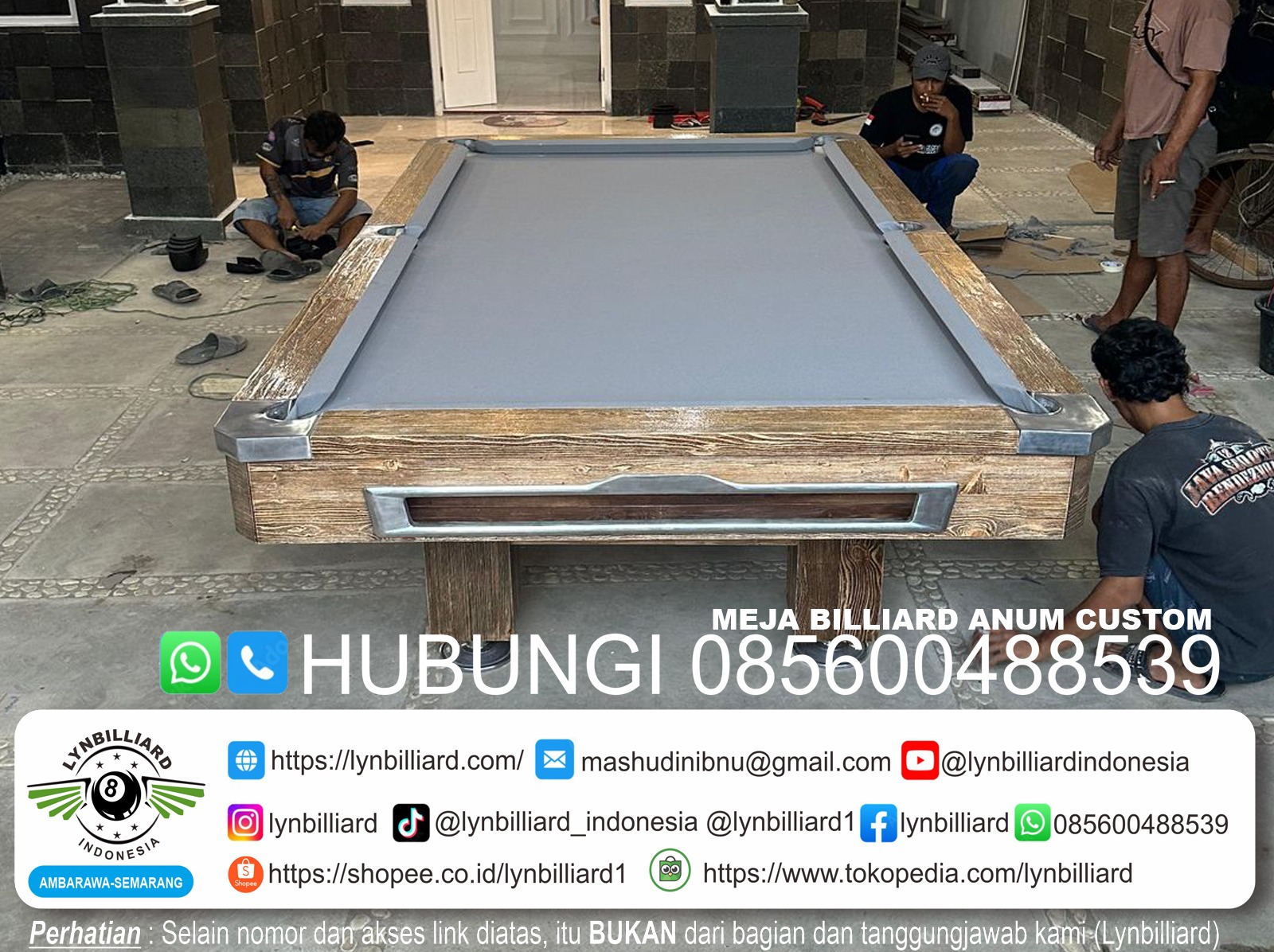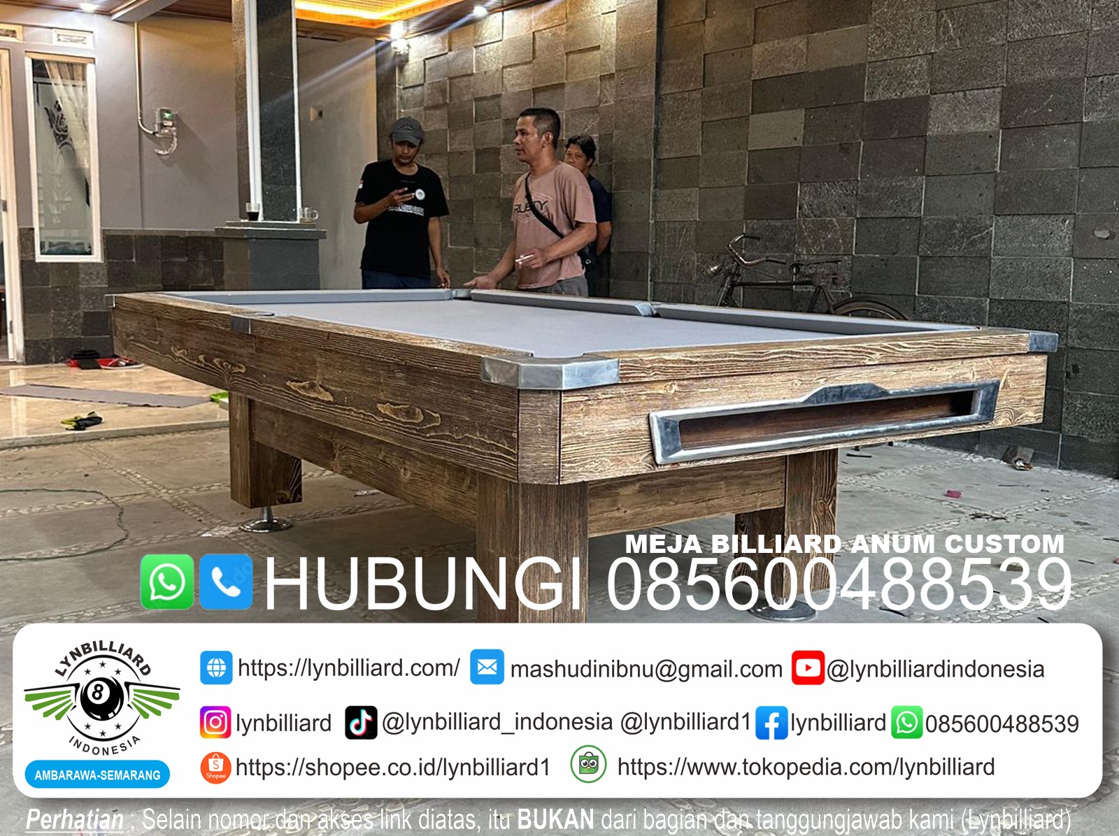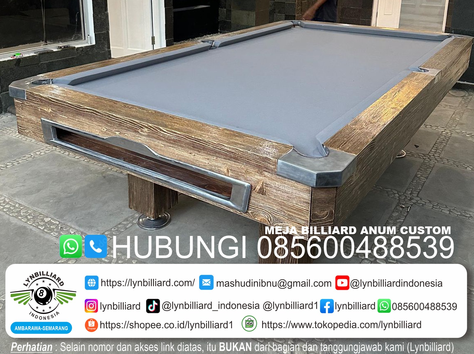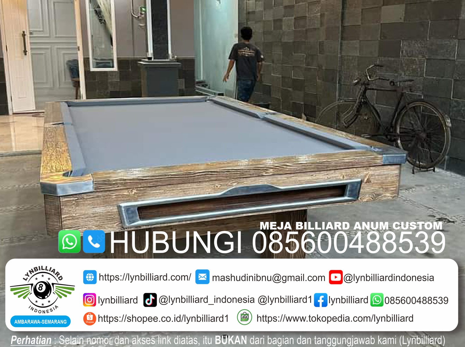 Meja billiard Anum Custom adalah elemen utama dalam permainan billiard yang dirancang untuk memberikan pengalaman bermain yang presisi dan nyaman